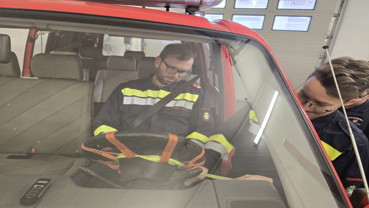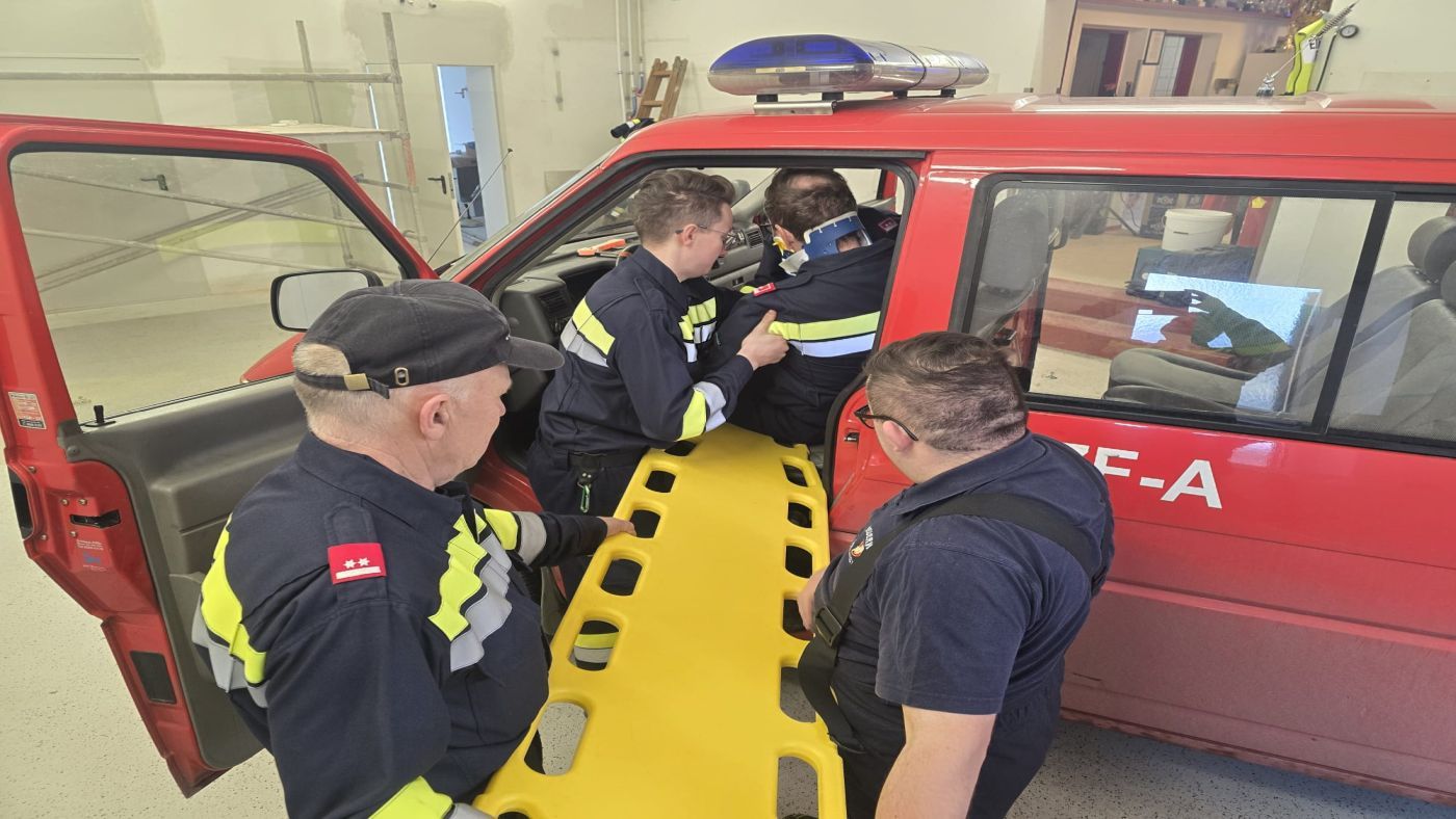 Dabei wurde die Bergung aus einem Fahrzeug in zwei Gruppen schrittweise beübt. Unter anderem die schonende Rettung von Personen mittels Spineboard, eine Fensteröffnung sowie die richtige Stabilisierung eines auf der Seite liegenden Fahrzeugs.
