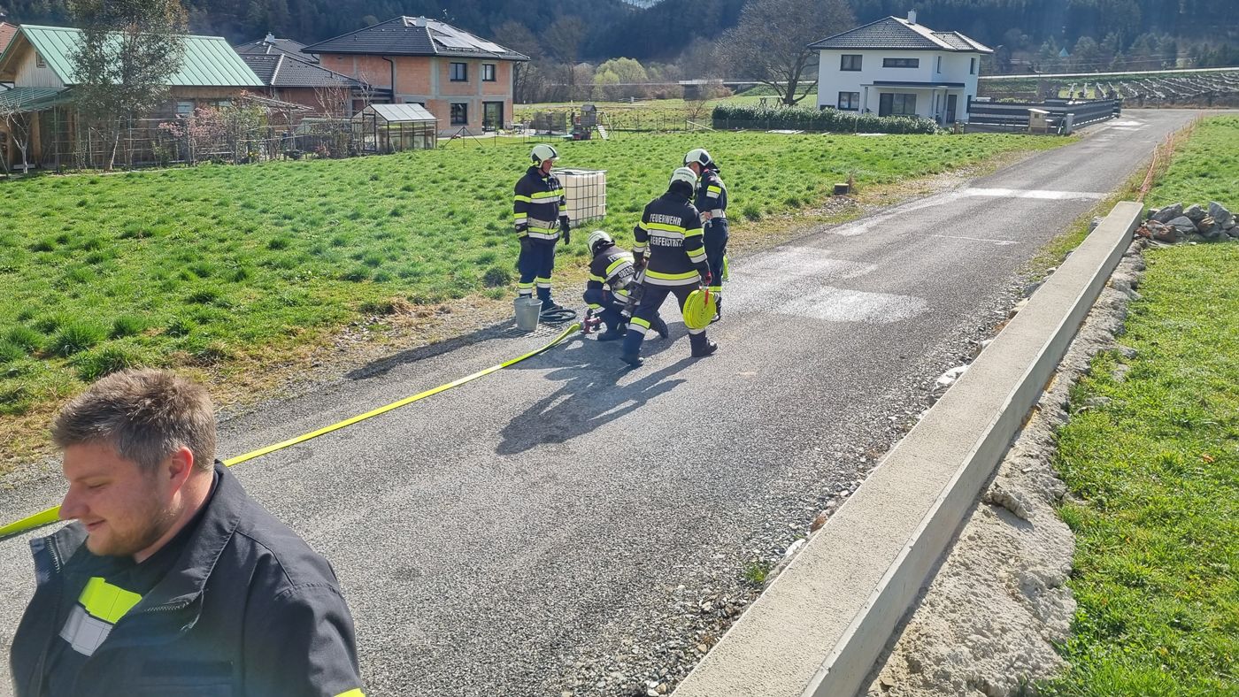 Bei der Übung ging es um den richtigen Aufbau einer Löschleitung für einen Flüssigkeitsbrand und einem Scheunenbrand anhand der Branddienstleistungsprüfungsbeispiele und das erstellen einer Saugleitung.