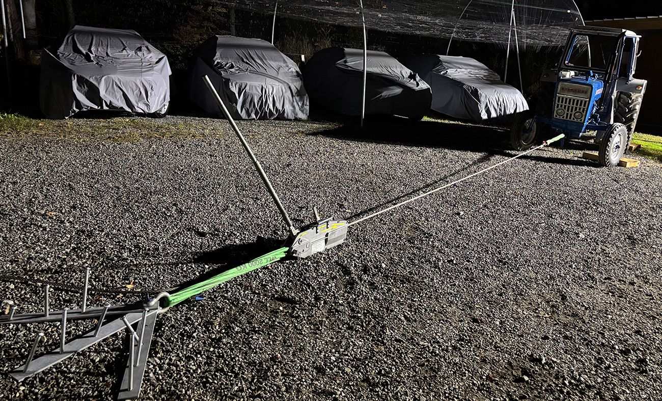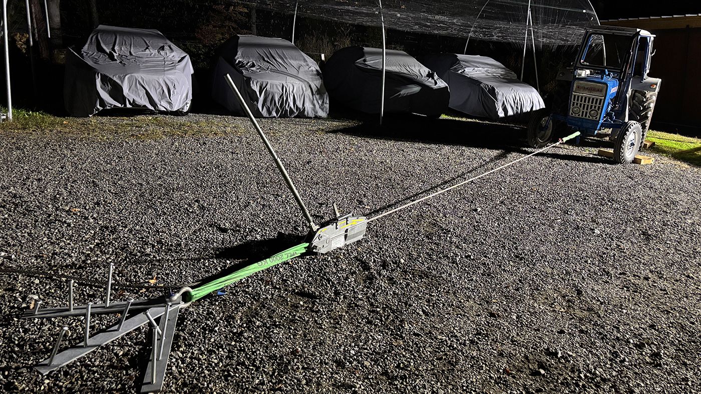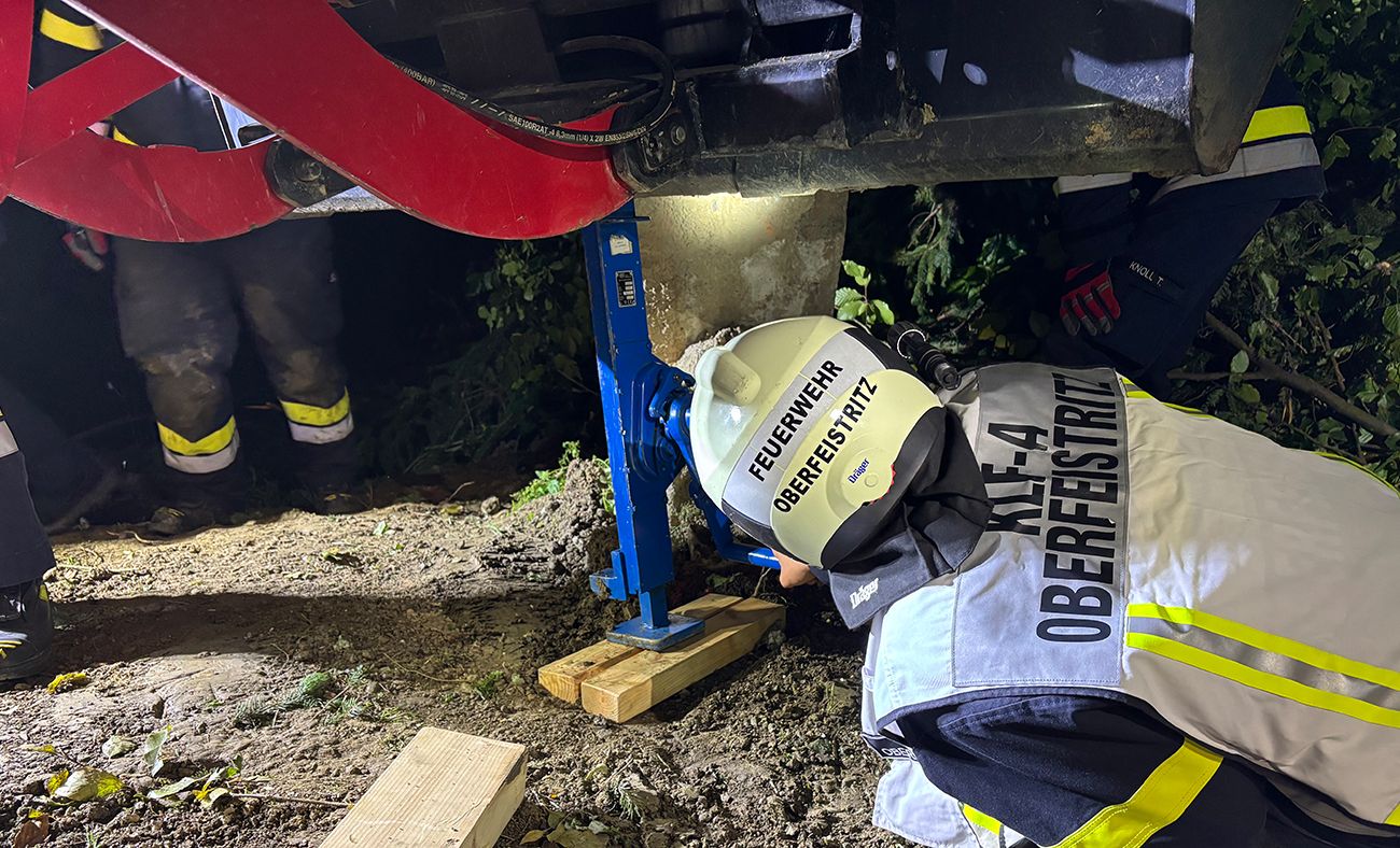 Zuerst wurde der Traktor gegen das Rückrollen gesichert und anschließend mittels Greifzug und Freilandverankerung vorsichtig von der Person weggezogen.