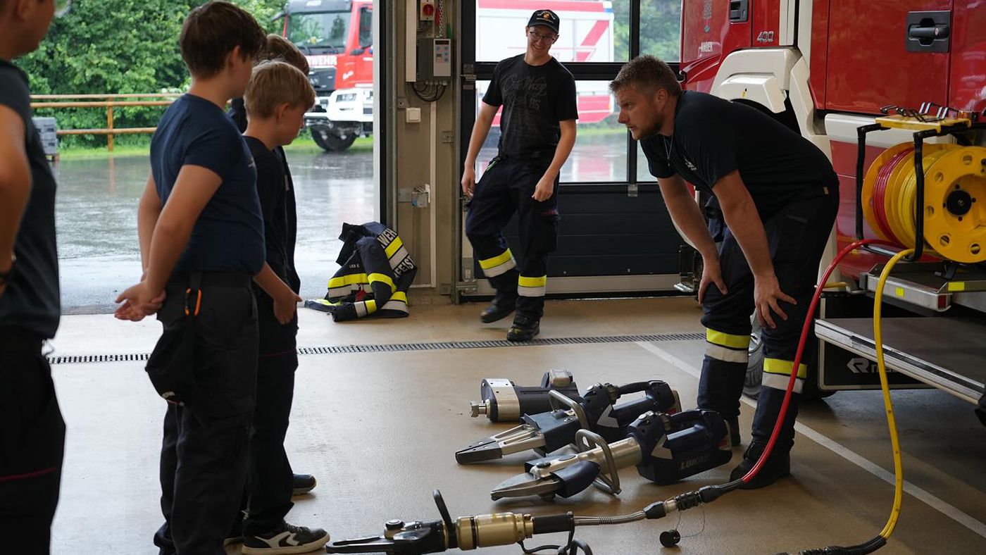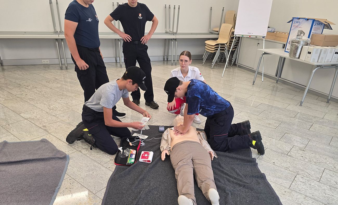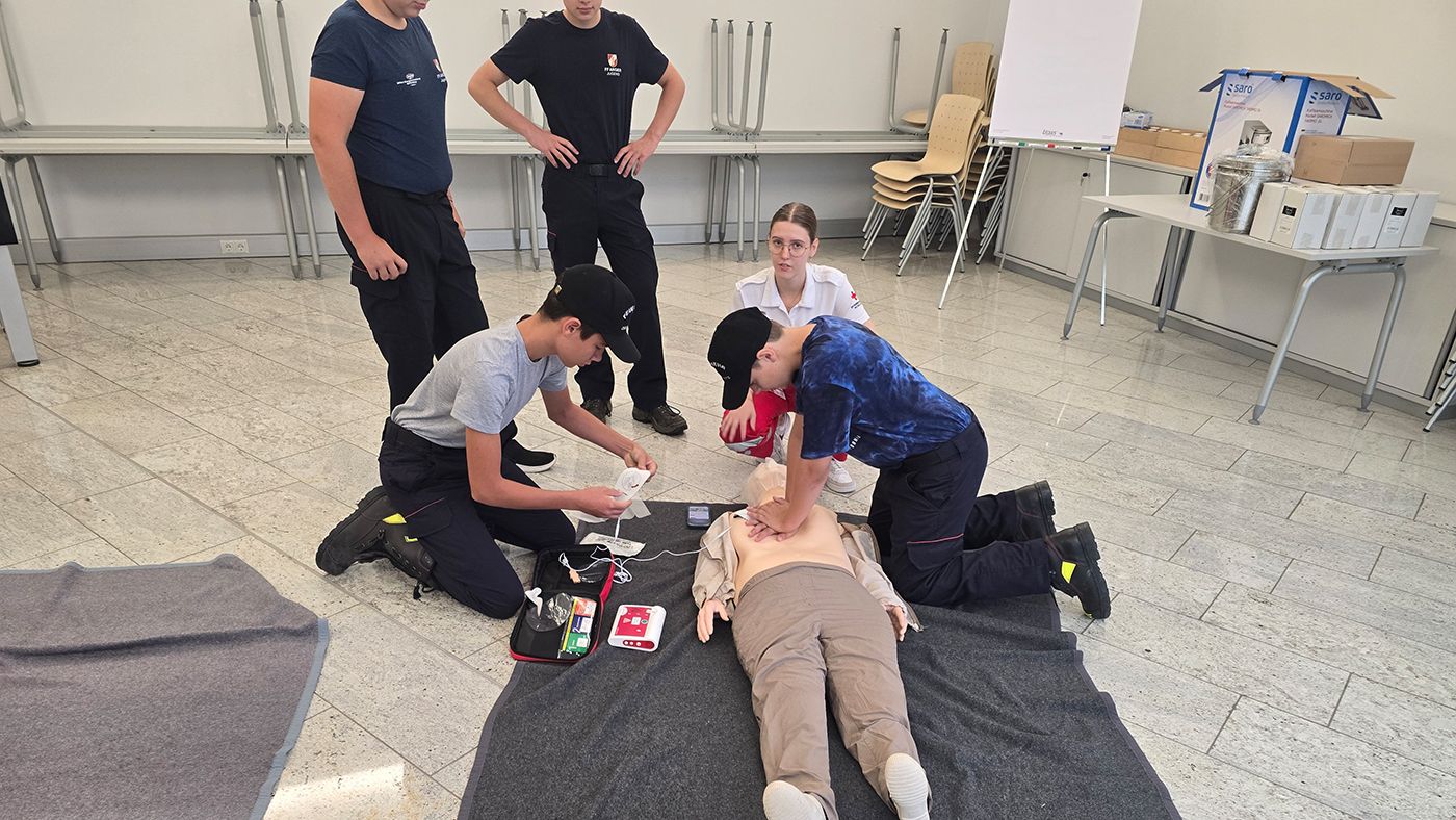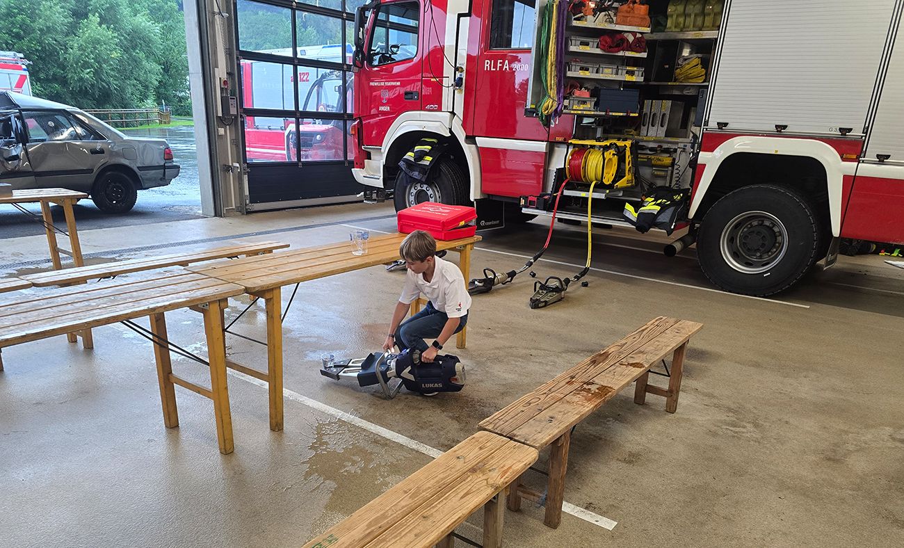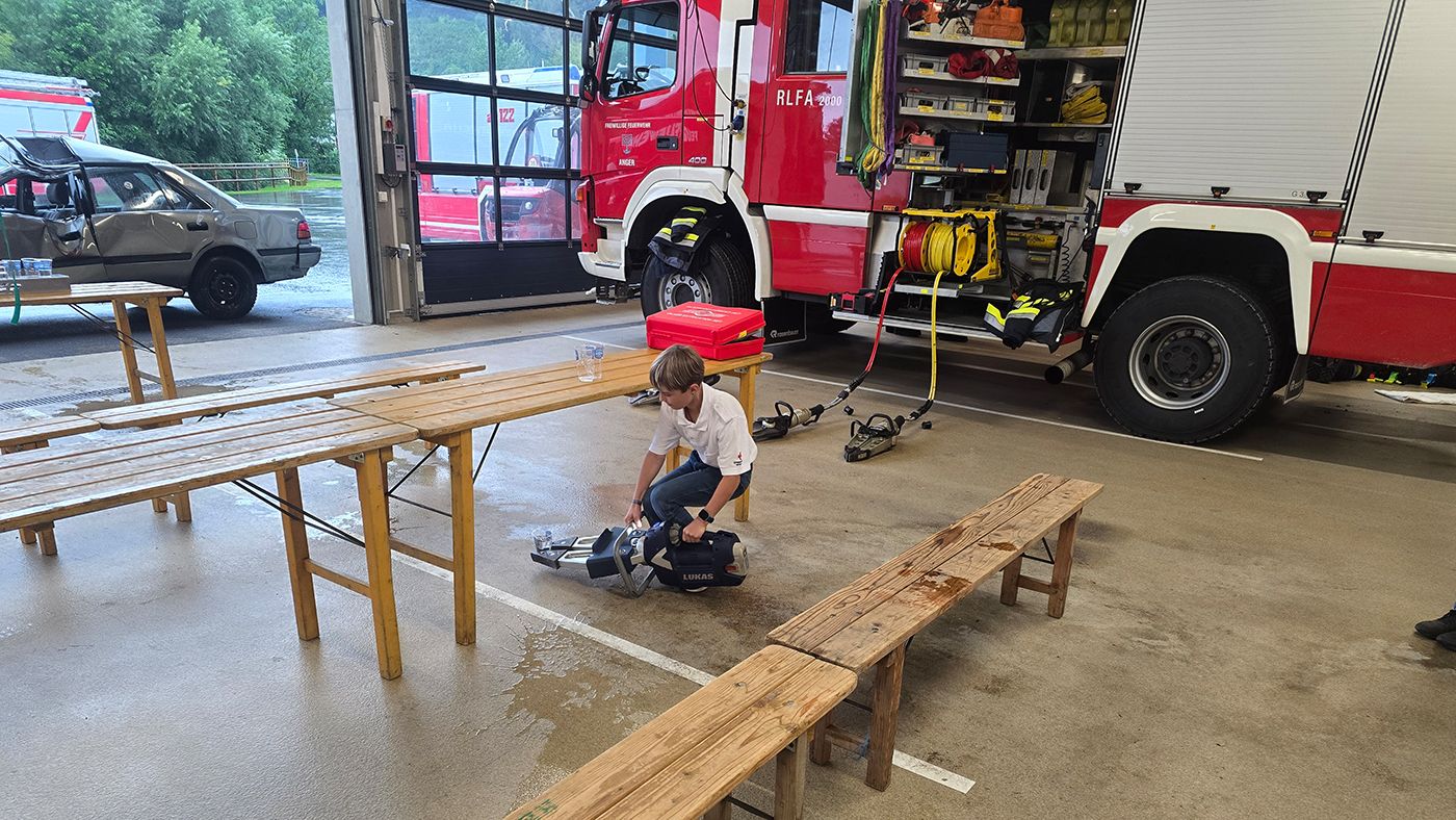 So wurde spielerisch der Umgang mit dem hydraulischen Rettungsgerät erklärt oder wie man richtig eine Herzdruckmassage durchführt.
