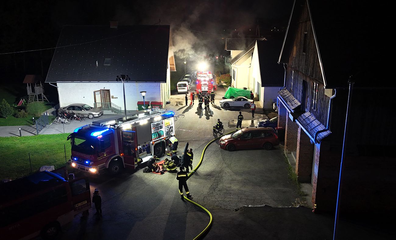 Das TLF-A Oberfeistritz mit dem Atemschutztrupp hatte die Aufgabe, die Menschenrettung von einer Personen durchzuführen, während sich der Atemschutztrupp des RLF-A Viertelfeistritz fertigmachte, um anschließend die andere Personen zu suchen.