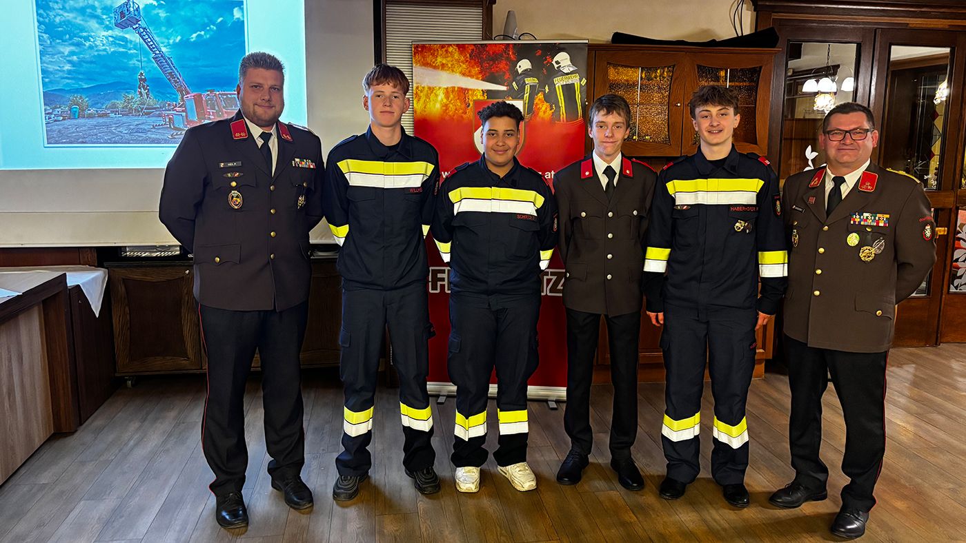 Nach den Berichten der Beauftragten wurden die Jugendfeuerwehrmänner Dominik Huber, David Schreck, Fabian Haberhofer und Lukas Wilhelm angelobt und somit in den Aktivstand überstellt.