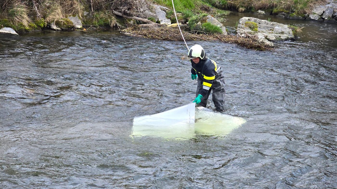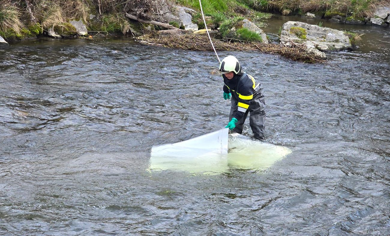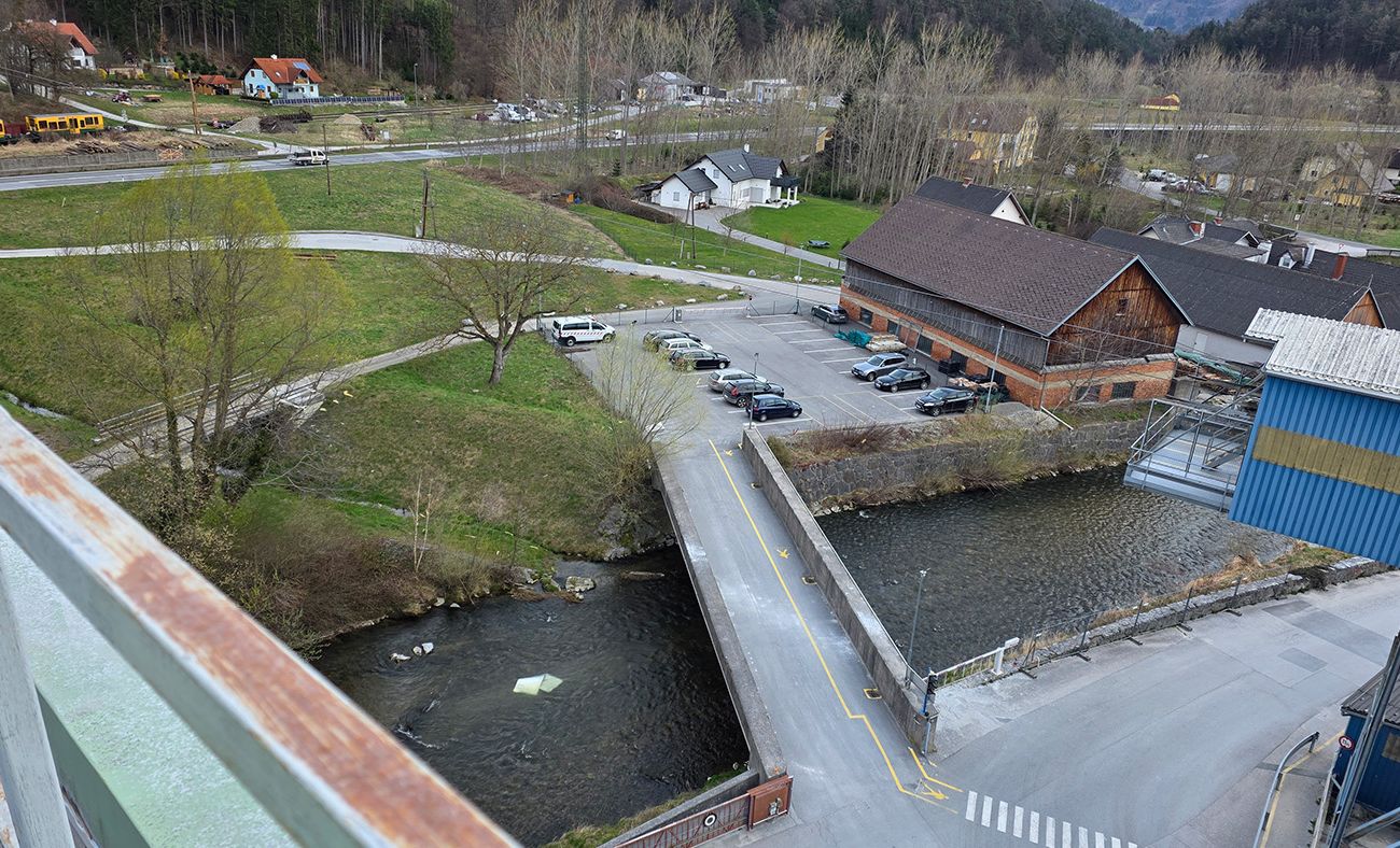 Vor ergab sich dann, dass bereits einige Teile in die Feistritz gelangt sind, woraufhin unsere Aufgabe darin bestand, diese Blechteile zu bergen und das weitere Dach mit Spanngurten abzusichern.