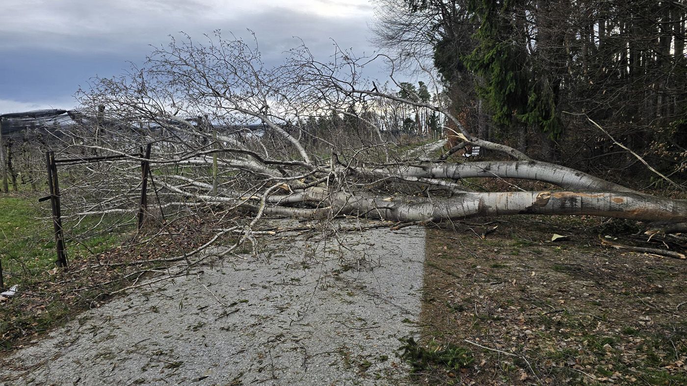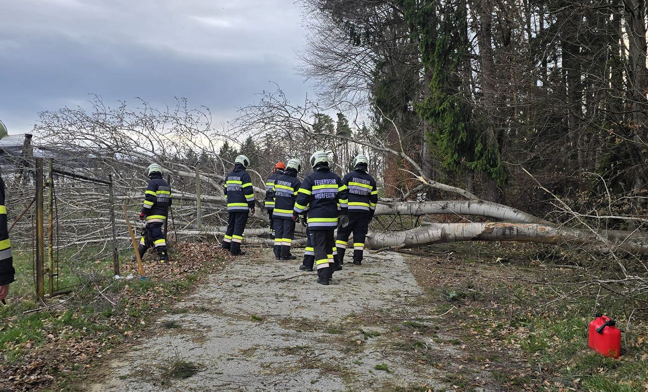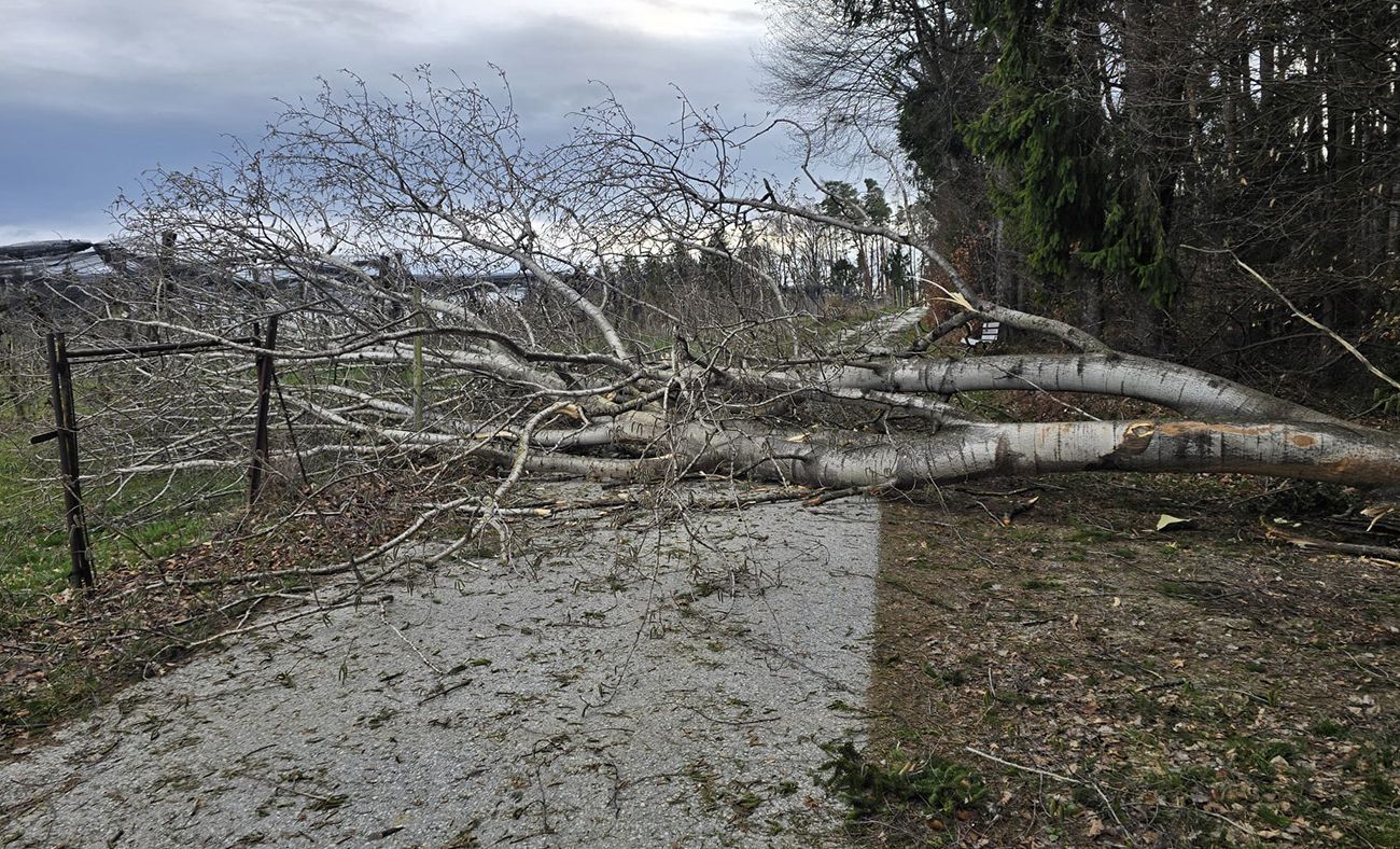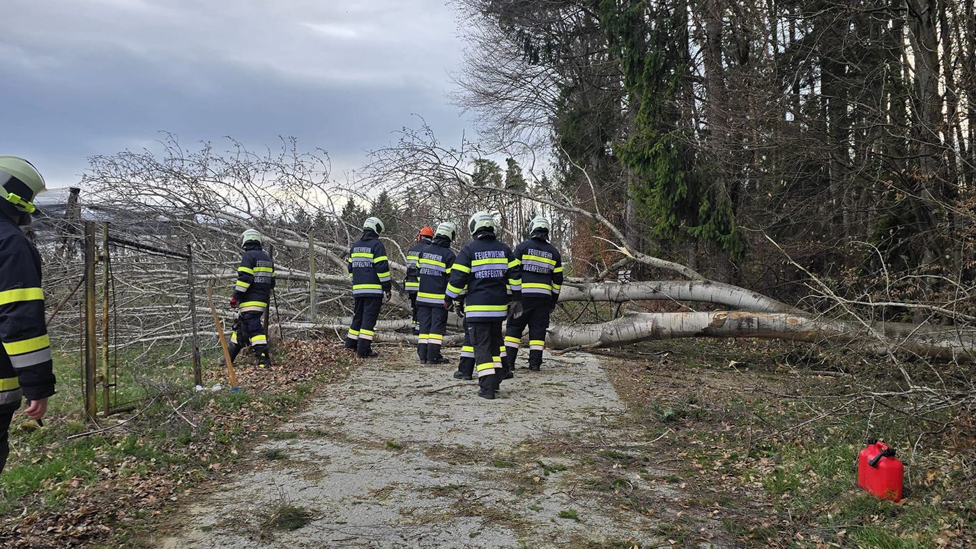 Am Freitag, dem 27. März 2026, mussten wir gegen 16:46 Uhr, aufgrund der starken Windböhen, zu einer letzten Baumbergung ausrücken. Hier mussten wir nun den Eichweg von mehreren umgestürzten Bäumen befreien.