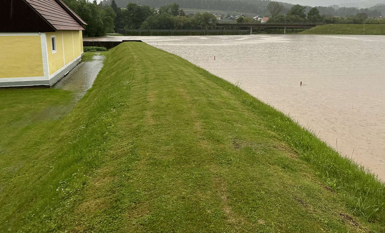Aufgrund der starken Regenfälle bei uns in der Region wurden wir um kurz vor halb 7 Uhr abends mittels Sirenenalarm alarmiert.