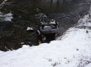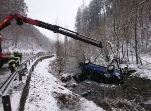 Der Fahrer verlor auf der schneebedeckten Fahrbahn wahrscheinlich die Kontrolle und stürzte leider genau vor Beginn der Leitschiene in die Feistritz.