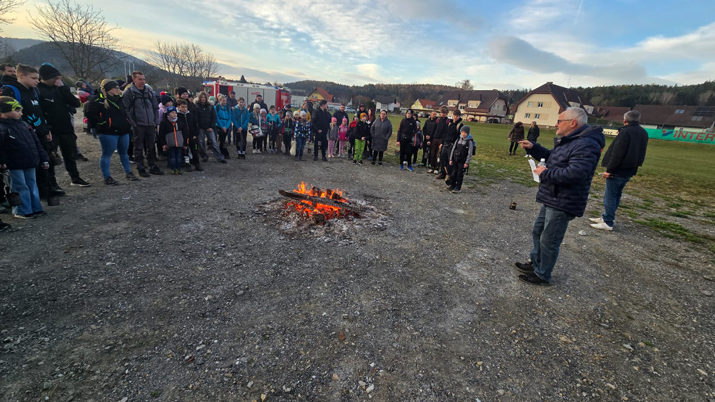 Nach der Segnung durch Franz Neuhold wurde das Weihfeuer an die Kinder verteilt.